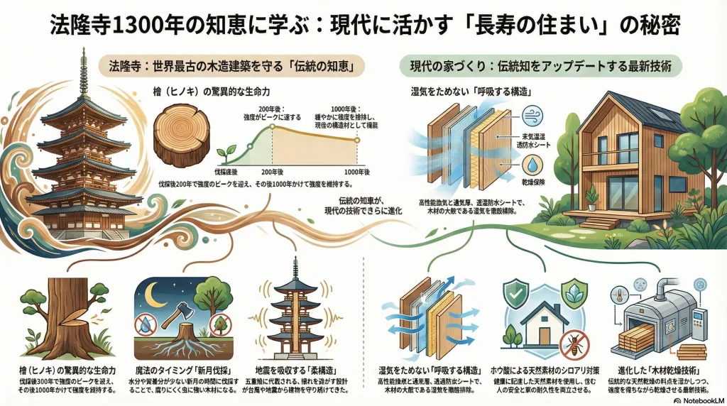 実は、法隆寺の知恵は現代住宅にも応用できるんです(´ω`)。