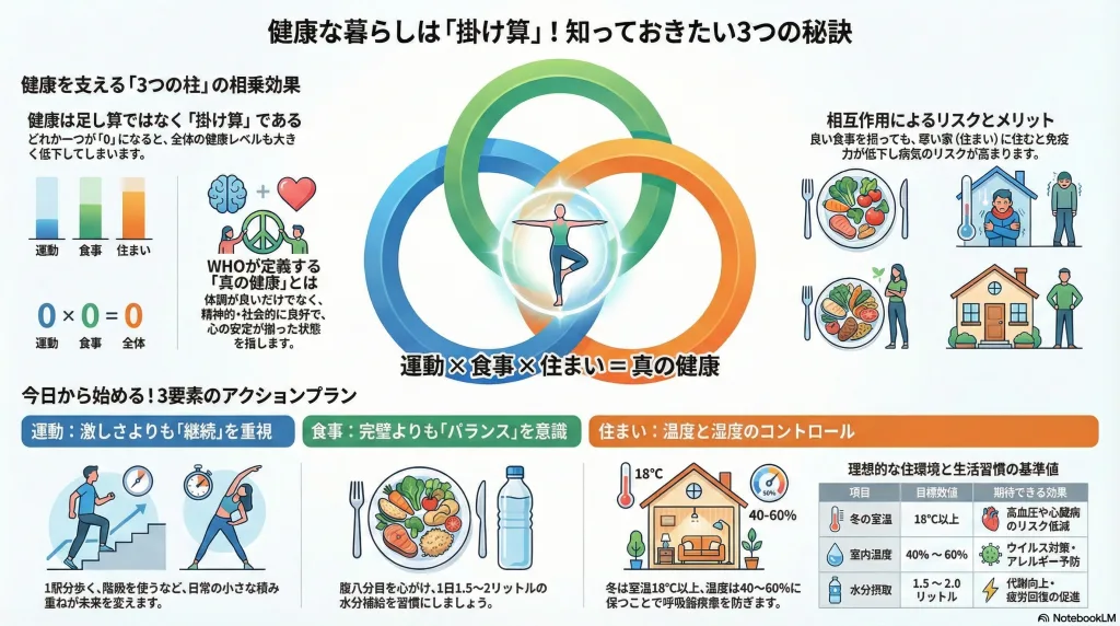 健康の三大要素:「運動×食事×住まい」って何?