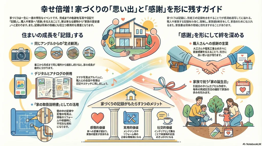 住まいづくりの過程を記録し、形に残すことは、単なる思い出作りを超えた価値があります。