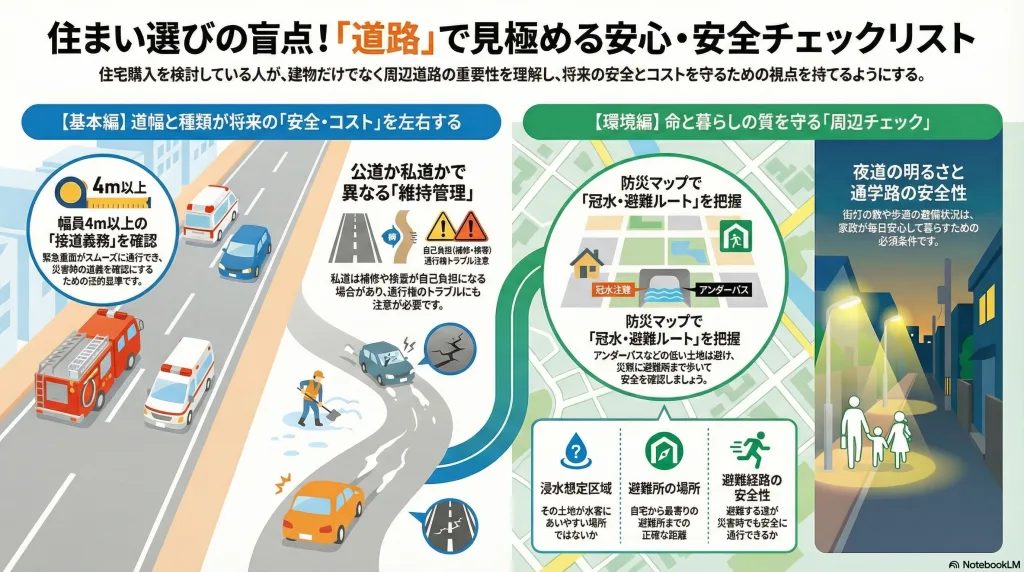 - 避難経路の安全性: 避難する道が安全に通行できるか🛣️