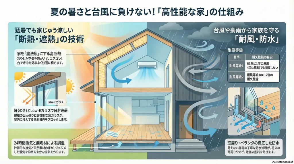 夏涼しい家の仕組み|高気密・高断熱+日射遮蔽の魔法