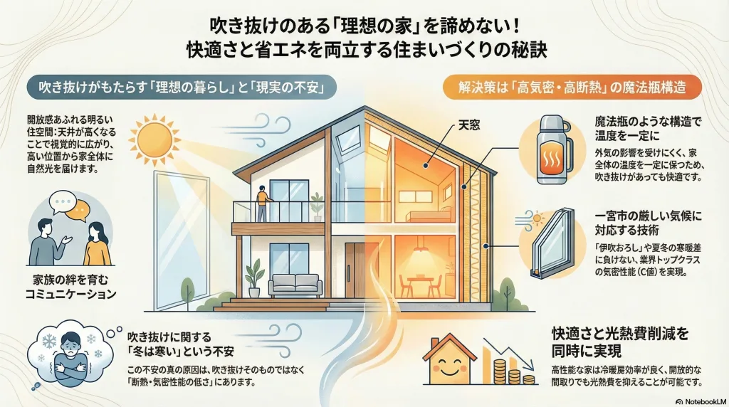 「吹き抜けのある明るい家に憧れるけれど、冬は寒そう…」