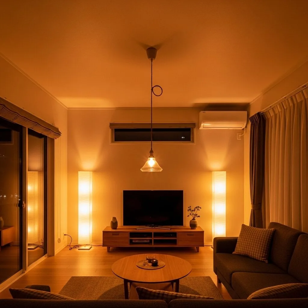 くつろぎたい場所には「電球色」がおすすめ🍊