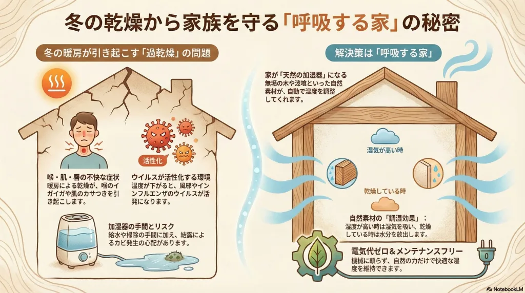 冬の乾燥から家族を守る、呼吸する家の秘密