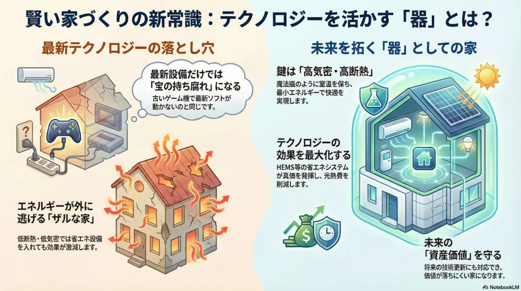 テクノロジーを活かせる「高気密・高断熱の器」が