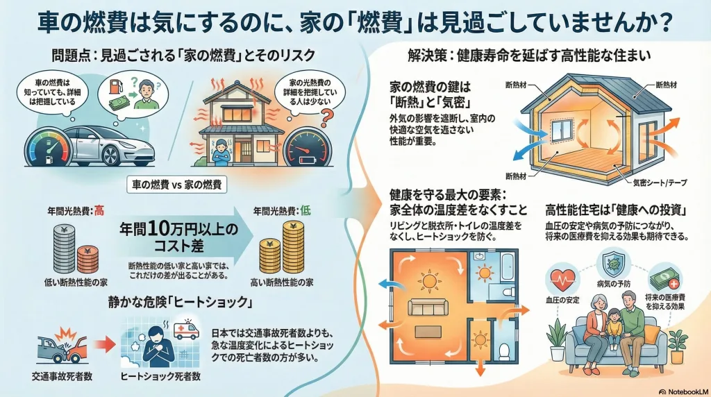 高気密・高断熱な家は人生100年時代の必須条件です。