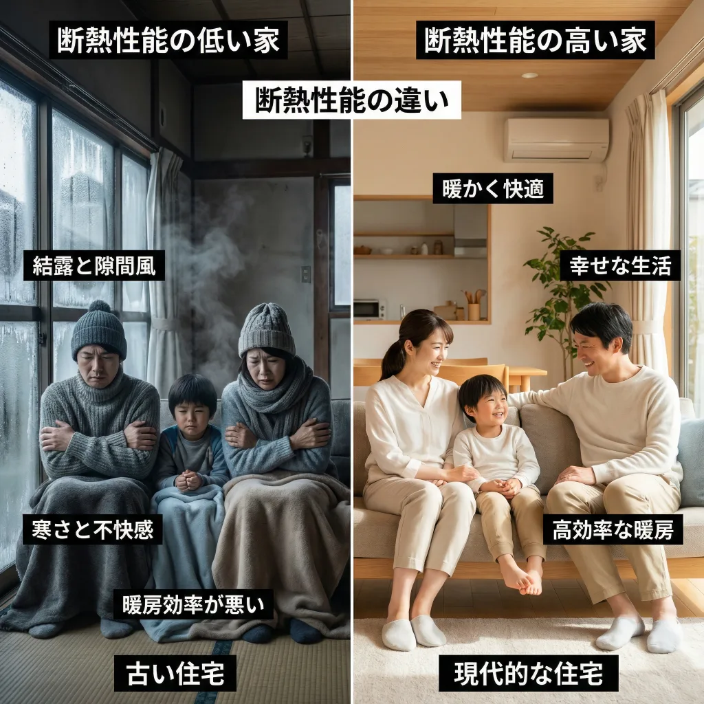 例えば、断熱性能が低い家と高い家で、