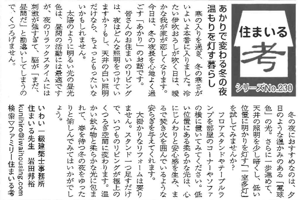 今日は、冬の夜長を心地よく過ごす「あかり」のお話です。