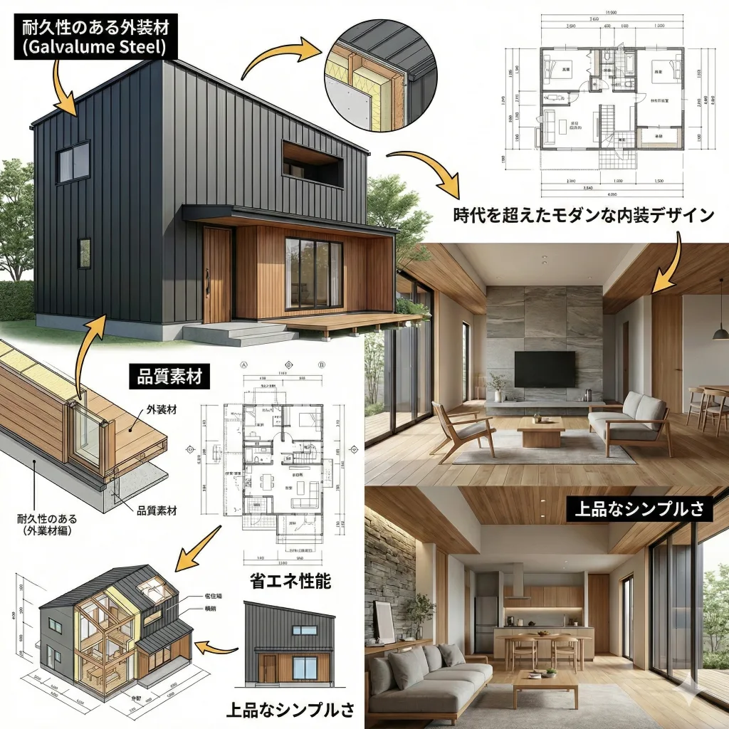 高耐久な素材、高断熱・高気密、普遍的なデザイン。