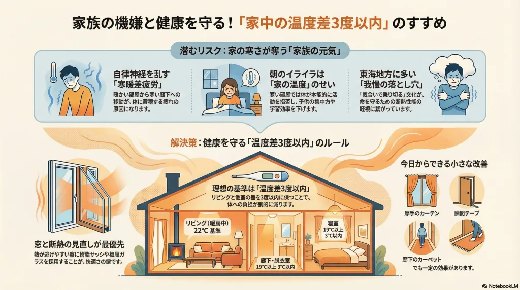 #寒暖差疲労 #住まいの温度管理 #家族の健康 #断熱性能 #住まいづくり