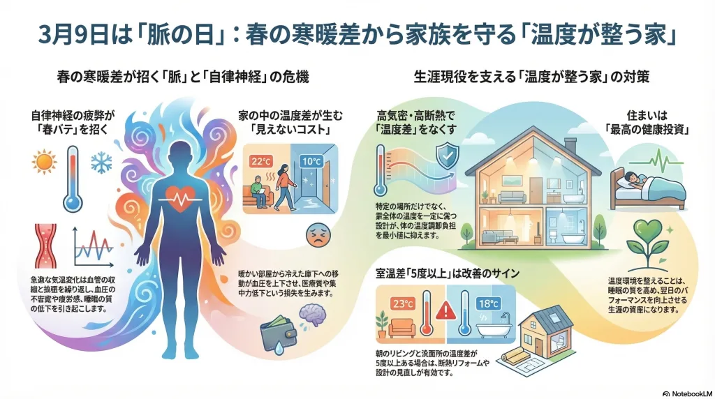 「春の寒暖差・脈・そして家の温度環境」の