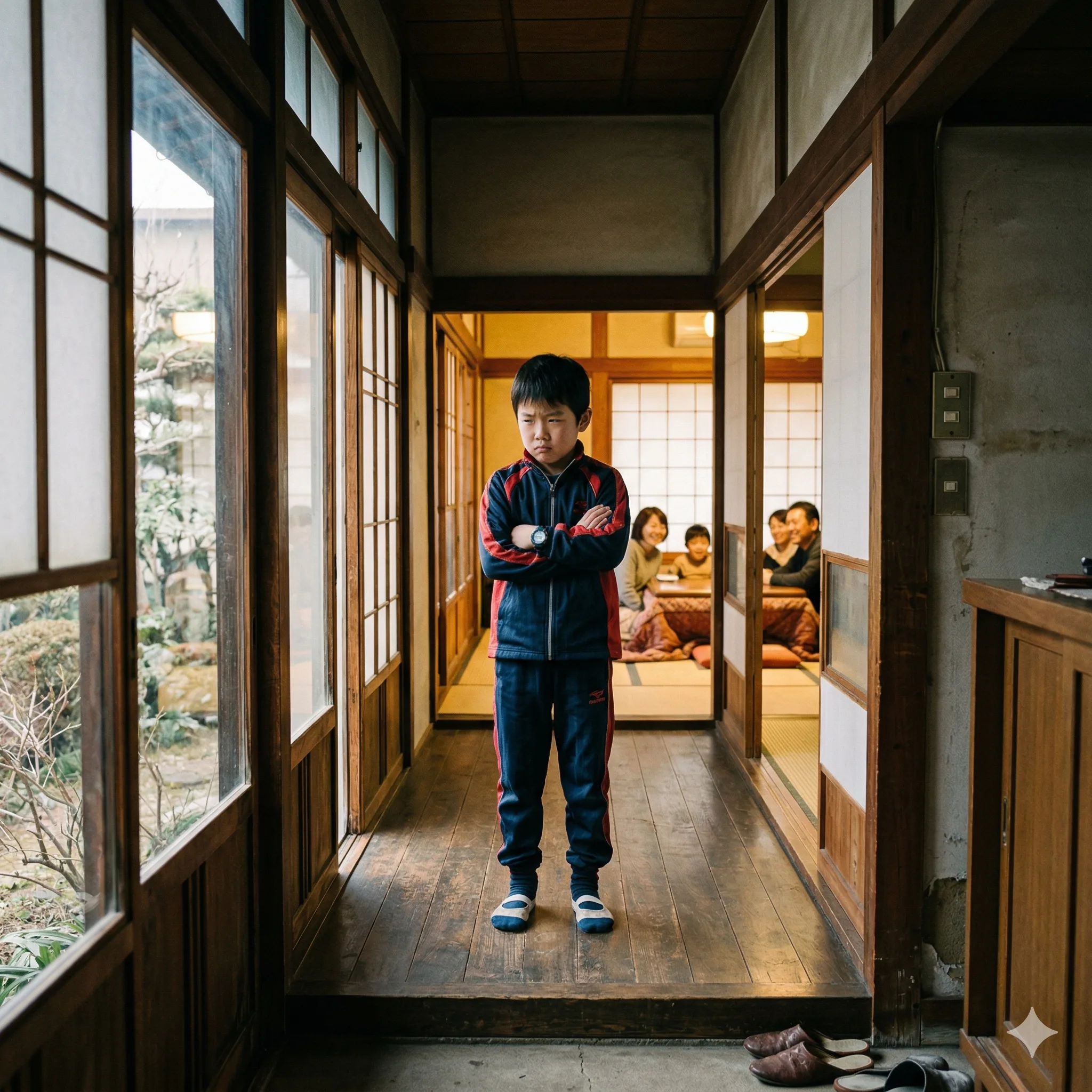 暖かいリビングから寒い廊下を通り、