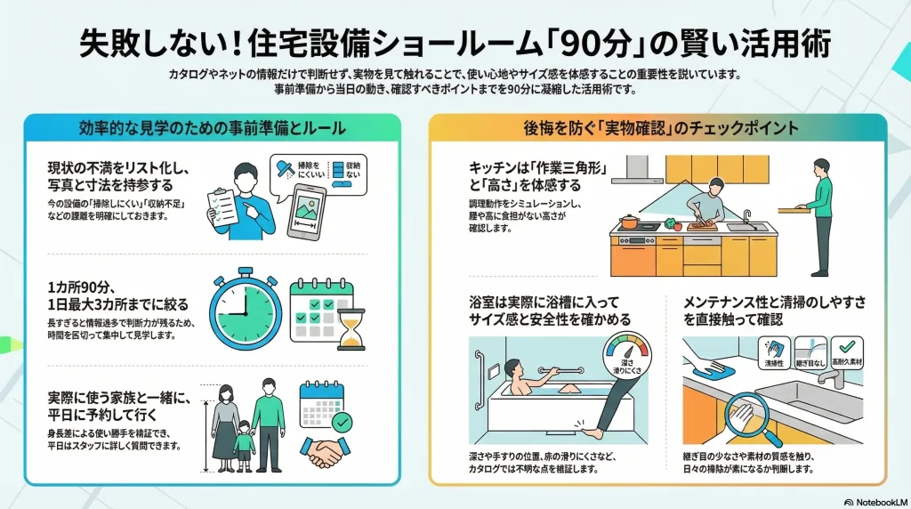 そして実際の見学では、使い勝手や素材、機能性をしっかり確認することがポイントです。