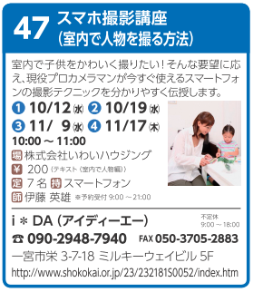 講座47 スマホ撮影講座(室内で人物を撮る方法)