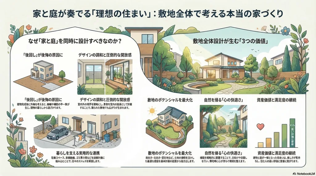 「まずは家を建てて、余ったスペースで庭を考える」というアプローチでは、理想の住まいは実現しにくいんです。