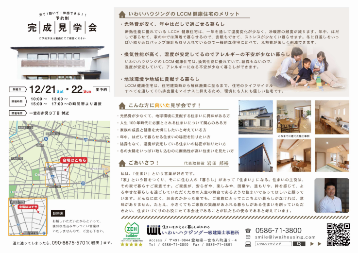 「完成見学会の予約をしたいんですが…」とお電話ください。