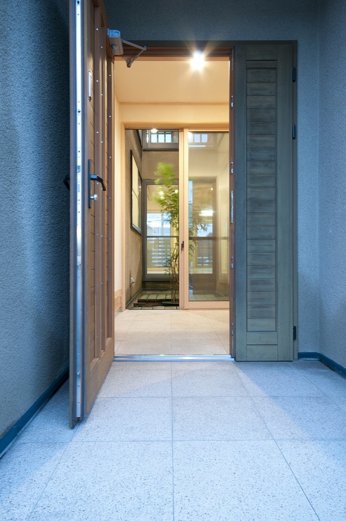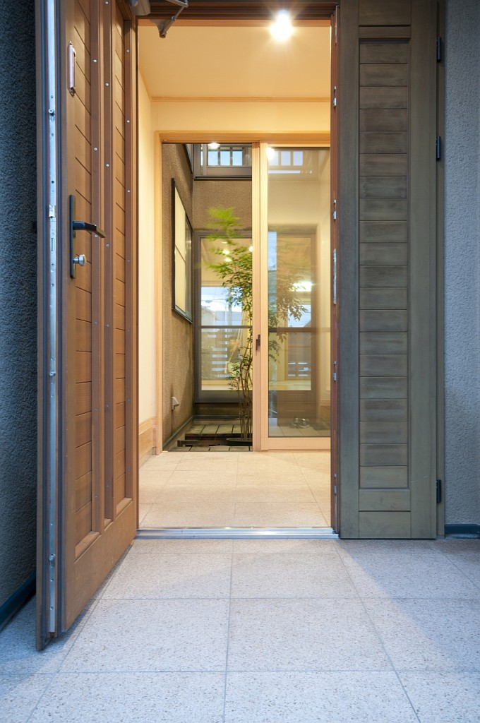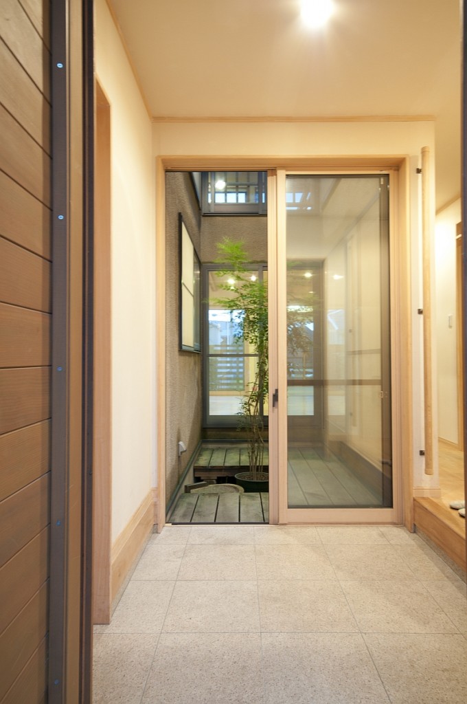 玄関ドアを開けるとそこにあるのは坪庭です。