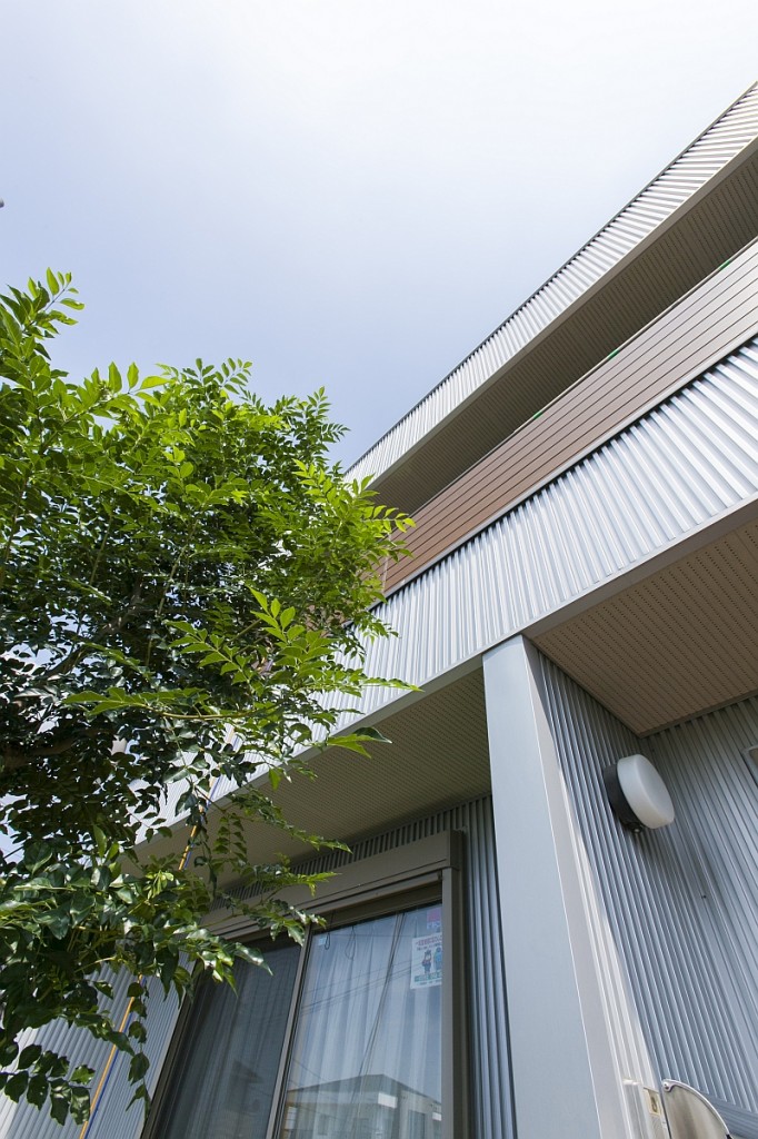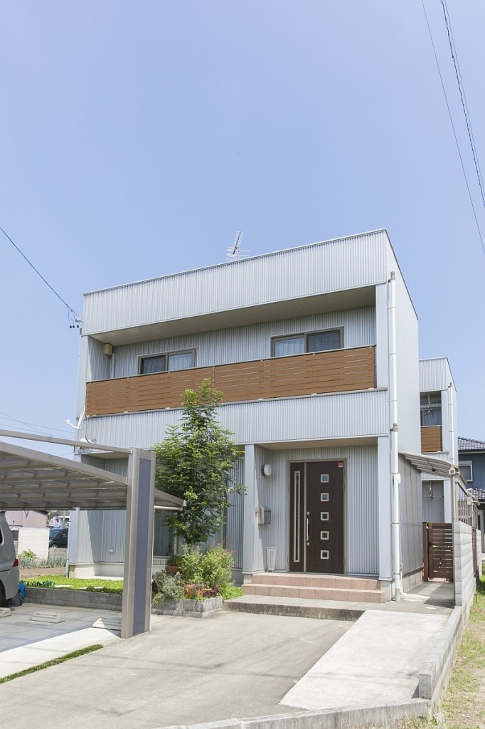 外壁に採用されたシルバーのガルバリウム鋼板も相まって、年月を感じない住まいです。
